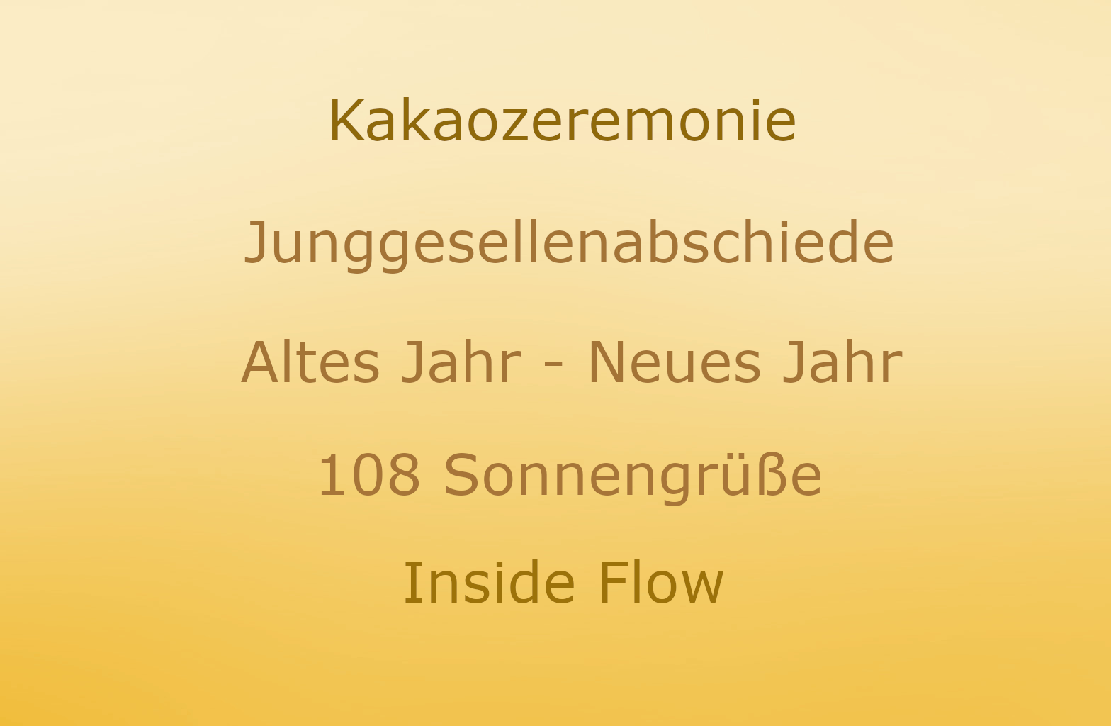 Mir macht es große Freude Workshops anzubieten. Für mich ist es so so viel mehr also nur eine Stunde, sondern steckt bei mir dabei immer ganz viel Herz mit drin. Mein Ziel ist es auch, dass die Teilnehmer besondere Erfahrungen machen, sich mit dem Herz verbinden und in ihrer ganz persönlichen Weise wachsen. Bei der Kakaozeremonie ist der Fokus auf die Verbindung mit dem Herzen gelegt und einer persönlichen Intention. Beim Inside Flow ist eine Kombination aus Musik, Herz und Bewegung, eine bewegte Meditation. Die 108 Sonnengrüße stärken nicht nur den Körper, sondern auch das Selbstbewusstsein und bringen die eigenen Grenzen und Möglichkeiten hervor.